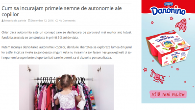 Descoperă toate produsele noastre! Descoperă toate produsele Danonino Danonino Mic Dejun cu caise 143g Danonino Mic Dejun cu căpşuni 143g Danonino iaurt de băut cu căpșuni & banane/ piersici & caise 6x100G Danonino căpșuni/vanilie-căpșuni/afine 6x50g Danonino de băut, căpșuni Danonino de băut, caise Danonino căpșuni 70g Danonino căpșuni/banane 70g Danonino căpșuni/cireșe/zmeură 6x50g Danonino afine/banane 4x50g Danonino căpșuni/caise 4x50g Danonino banană/zmeură 4x50g Danonino iaurt de băut cu banane 4x100g Danonino iaurt de băut cu căpșuni 4x100g Spune Da unui viitor mai fericit La Danonino, noi credem că a spune DA autonomiei copilului este un da pentru a-i construi încrederea în sine . Descoperă campania Spune Da! Haide să ne sprijinim copiii și să le spunem DA explorării creativității, gândirii proprii, luării propriilor decizii și creării propriului drum în viață. Alimentează imaginația și creativitatea copilului tău! Câte "NU-uri" aude un copil în fiecare zi? Ce se întâmplă când un copil aude "NU" de la părinții lui? Cum putem să spunem "DA" mai des si cum punem limite cu blândețe aflați din conferința Danonino Află mai multe Spune DA încrederii în sine Micile alegeri de zi cu zi și susținerea inițiativelor copilului sunt cheia pentru creșterea unui copil autonom. Iar alimentația sănătoasă de la vârste foarte mici sunt esențiale pentru o creștere armonioasă. Spune și tu DA autonomiei cu Danonino și Desprecopii.com! Află mai multe! Ce spun prietenii Danonino despre autonomie Putem încuraja dezvoltarea autonomiei copiilor, dându-le libertatea să exploreze lumea din jurul lor astfel încât să învețe să gândească singuri. Asta nu înseamnă să-i lăsăm nesupravegheați, ci să-i expunem la experiențe și oportunități care le permit să-si dezvolte personalitatea. Află mai multe!